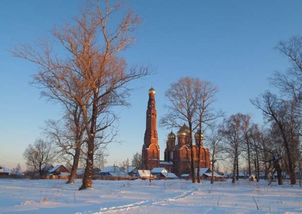 Колокольня храма высотой 90 метров, расположена в селе Вичуга, Ивановской области.