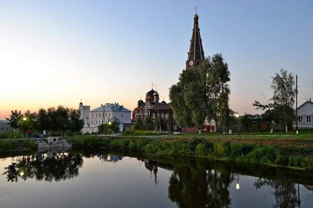 Мужской монастырь в городе Сарове на севере Тамбовской губернии с колокольней в 81 метр.