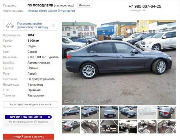 Со слов продавца, идеальный вариант. BMW 2014 года, пробег всего 5000 км (ездил дедушка за пенсией), да ещё и дизель на полном приводе. Тачка просто космос. Естественно, сделка состоялась и вы стали счастливым обладателем «баварца».